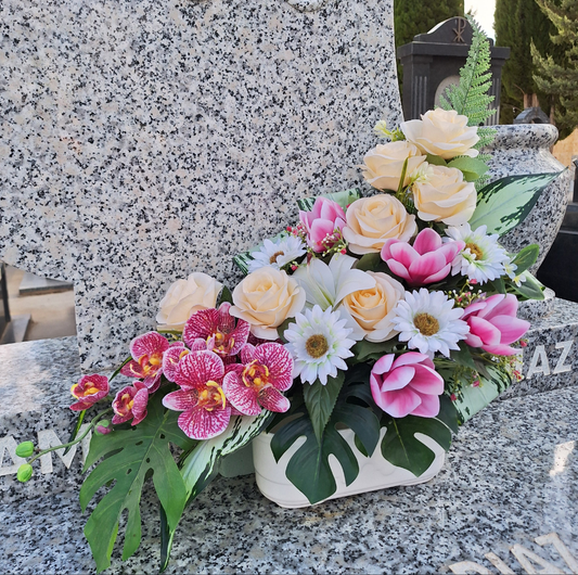 Jardineras, búcaros y centros artificiales rebajados al 25%.