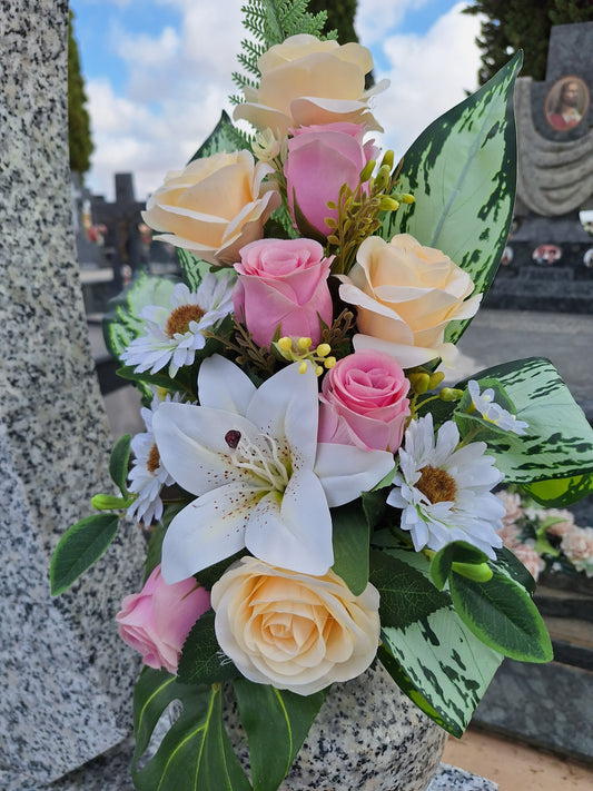 OfertaRAMO AGAVE Y ZINNIAS BLANCO